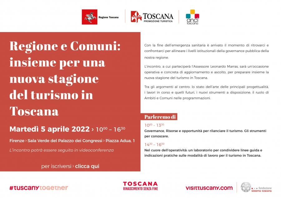 L’incontro, a cui parteciperà l’Assessore Leonardo Marras, sarà un’occasione operativa e concreta di aggiornamento e ascolto, per preparare insieme la nuova stagione del turismo in Toscana.