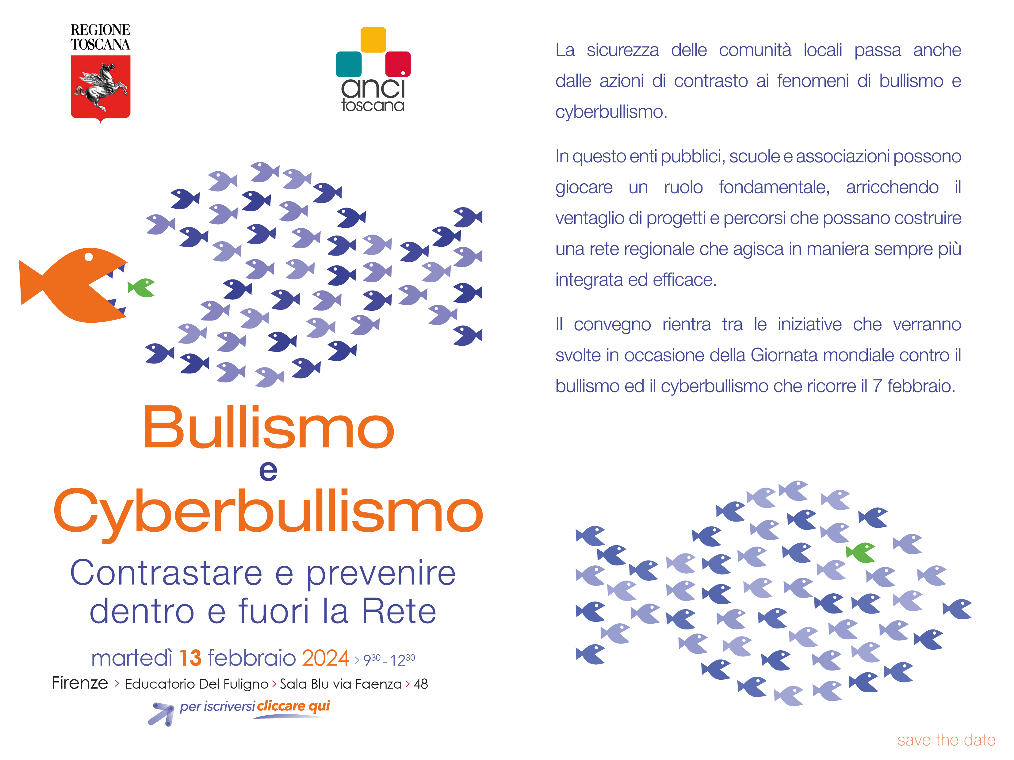 Il convegno rientra tra le iniziative che verranno svolte in occasione della Giornata mondiale contro il bullismo ed il cyberbullismo che ricorre il 7 febbraio.